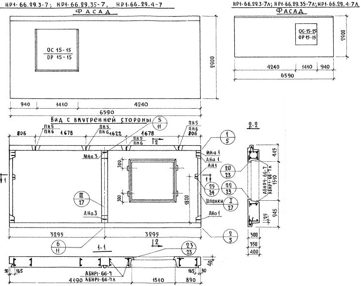 НР1-66.29.35-7л Наружная стеновая панель рядовая по Серии 1.132-1.