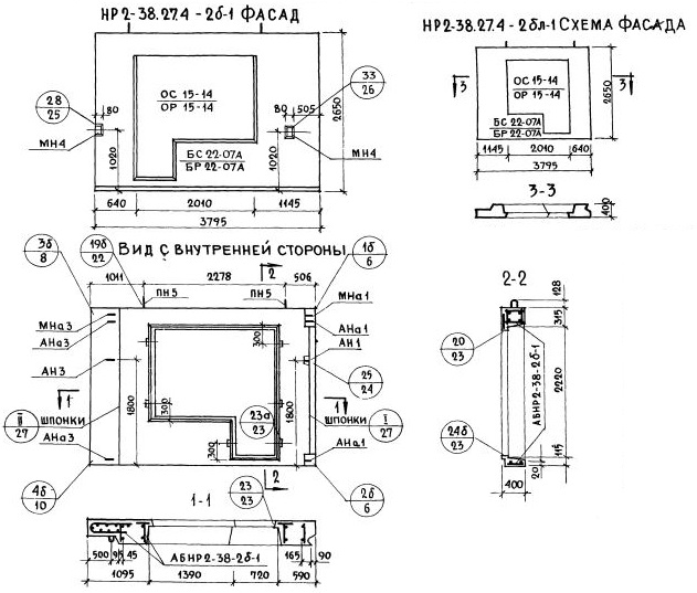 НР2-38.27.4-2бл-1   Наружная стеновая панель рядовая по Серии 1.132-1.
